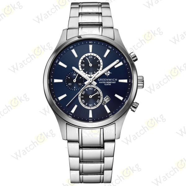 Хронограф с кварцевым механизмом серии Navigator — ваш надежный и функциональный помощник в любом путешествии,Корпус модели диаметром 43 мм сделан из нержавеющей стали,Этот гипоаллергенный материал хорошо подходит для ежедневного контакта с кожей запястья,На полированном циферблате синего цвета размещены счетчики минут и секунд, 24-х часовой индикатор, оригинальное окошко даты,Люминесцентное покрытие центральных стрелок и рисок позволяет легко определить время даже в темноте,Повышенная водостойкость часов равна 10 атмосфер,Модель представлена на браслете из гипоаллергенной нержавеющей стали,Застежка-клипса удерживает аксессуар на запястье, ее удобно использовать благодаря двум боковым кнопкам.