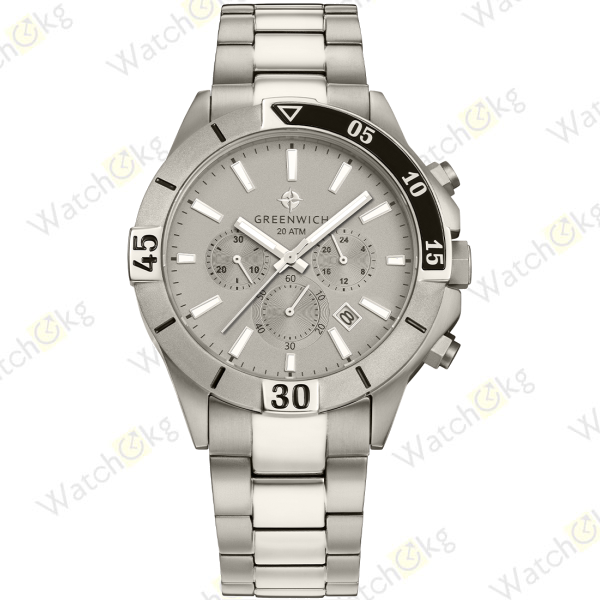 Легкость, прочность и гипоаллергенность: эти преимущества обеспечивает титан, из которого выполнены корпус и браслет кварцевых часов Greenwich серии Whale,Титановые часы действительно легче аналогичных моделей, сделанных из стали, что очень удобно для ежедневного использования,Титан идеально подходит для частых контактов с кожей запястья, так как практически не вызывает аллергических реакций,Корпус часов Whale довольно массивный, его диаметр равен 44 мм, в конструкции предусмотрена защита для рельефной заводной головки,На поворотный безель вынесена дополнительная шкала с выделенным сегментом 0-15 секунд, Светло-серый матовый циферблат, защищенный минеральным стеклом, включает накладные риски и центральные стрелки, покрытые специальным люминесцентным составом, три дополнительных индикатора, выделенных визуально полировкой в виде солнечных лучей, и окошко даты,Засекать время в минутах и секундах можно с помощью кнопок хронографа, вынесенных на боковую часть корпуса,Повышенная водостойкость хронографа составляет 20 атмосфер,Это говорит о том, что часы можно оставить на запястье, даже если вы собираетесь плавать или погружаться с маской,Часы Whale – это стильный и функциональный аксессуар,Дымчато-серый цвет, характерный для титана, подчеркивает его универсальность, Часы хорошо подойдут практически под любой выбранный вами образ, от спортивного, до расслабленного casual.