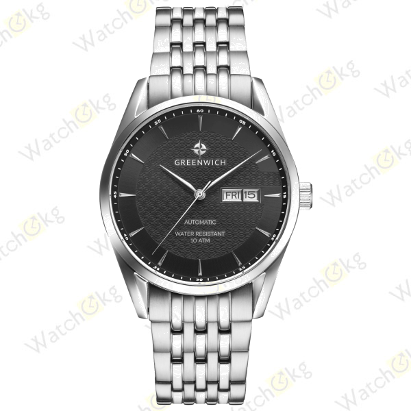 Элегантность, классические линии и уважение традиций задают тон дизайну часов серии Good Luck Classic, Корпус модели, диаметром 42 мм, состоит из трех частей,Он сделан из нержавеющей стали c двумя видами полировки: зеркальной по безелю и матированием,Задняя крышка прозрачная: вы можете любоваться автоматическим механизмом TMI, на роторе которого выгравирован силуэт парусника, символа английских мореходов,На фоне черного циферблата с рисунком гильоше, напоминающем волны, расположились три центральные стрелки и хорошо читаемое окошко даты и дня недели, выделенное стальной рамкой,Накладные риски закреплены на пластине в форме латинской буквы G, первой буквы в названии бренда, В модели установлено минеральное стекло,Повышенная водостойкость составляет 10 атмосфер,Часы дополняет литой браслет из нержавеющей стали с удобной в использовании и надежной застежкой-клипсой, Автоматические часы Greenwich хорошо подходят для того, чтобы носить их каждый день: универсальный дизайн сочетается практически с любыми предметами гардероба, а механизм заводится, находясь на запястье владельца.
